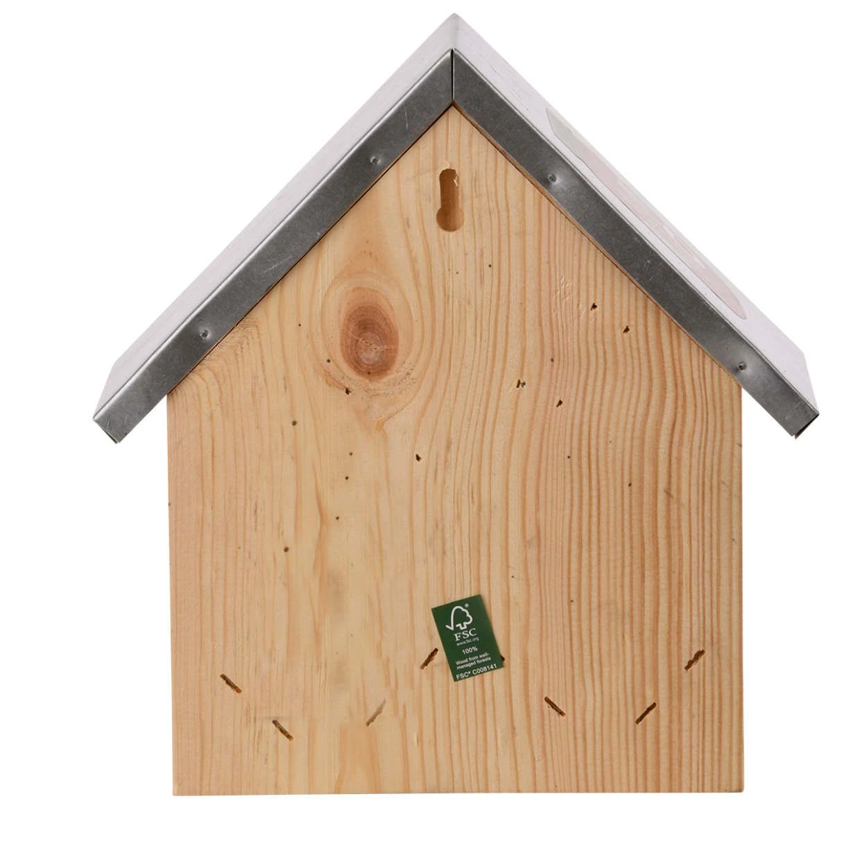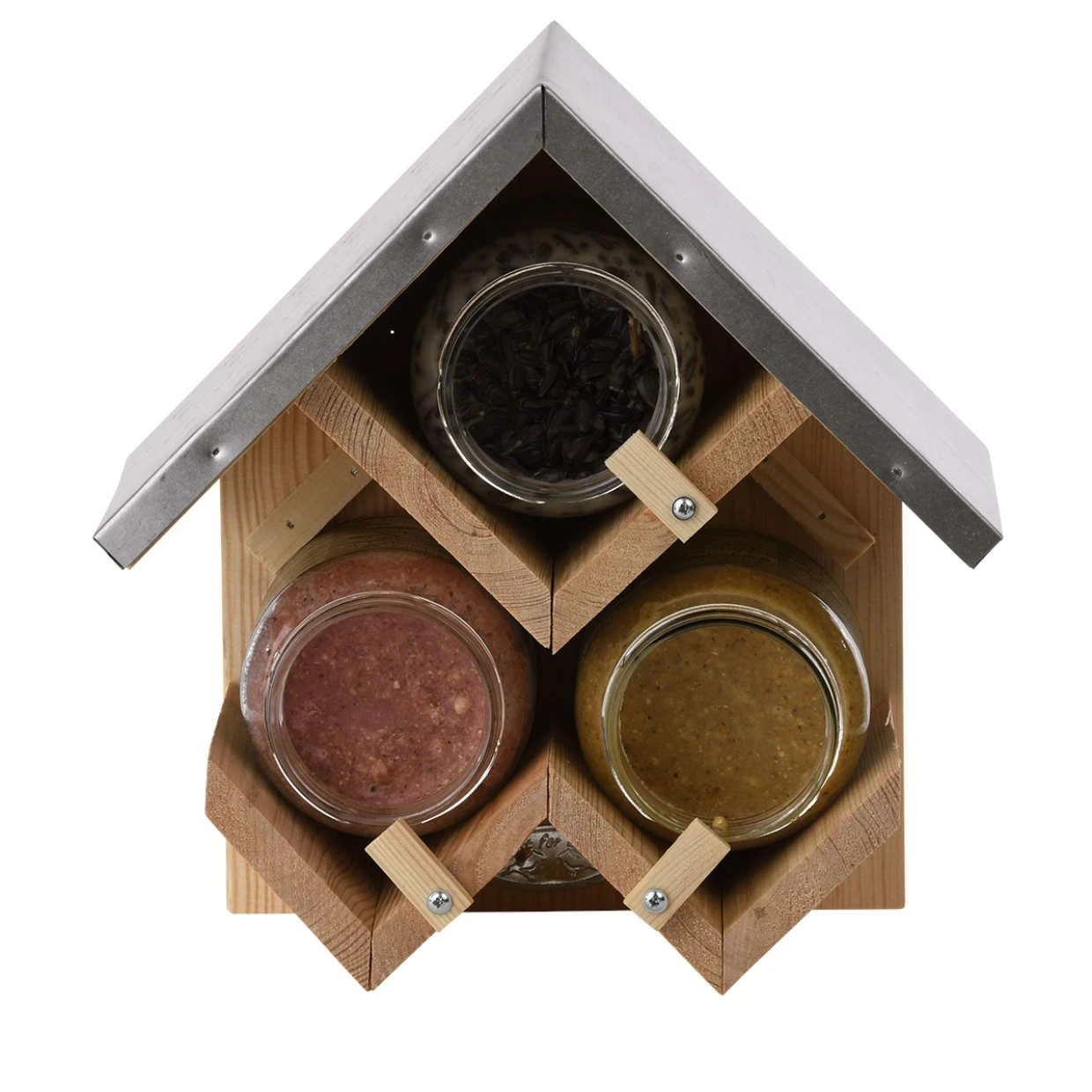 Met dit pindakaashuisje Triple kun je de vogels echt verwennen, want dit pindakaashuisje heeft namelijk plaats voor 3 vogelpindakaaspotten en is geschikt voor alle soorten pindakaaspotten. Het pindakaashuisje beschikt over een sleutelgatfrees, hiermee kun je het pindakaashuisje gemakkelijk ophangen. Plaats het pindakaashuisje Triple op een goede plaats, zodat je kunt genieten van de vogels die op de vogelpindakaas afkomen.