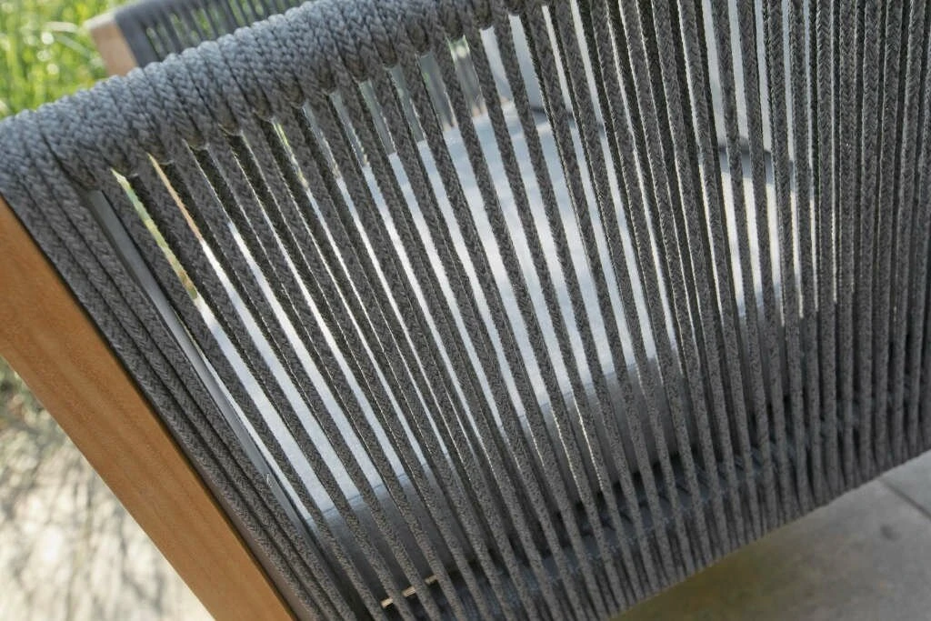 De Exotan San Remo stoel heeft een unieke uitstraling doordat de rugleuning is gemaakt van touw, maar niet zomaar touw maar rope. Rope is sneldrogend en UV-bestendig. Het frame is gemaakt van aluminium maar de poten zijn weer van teak hout. Deze combinatie van materialen maakt de set nog mooier om naar te kijken en natuurlijk heerlijk om op te zitten.