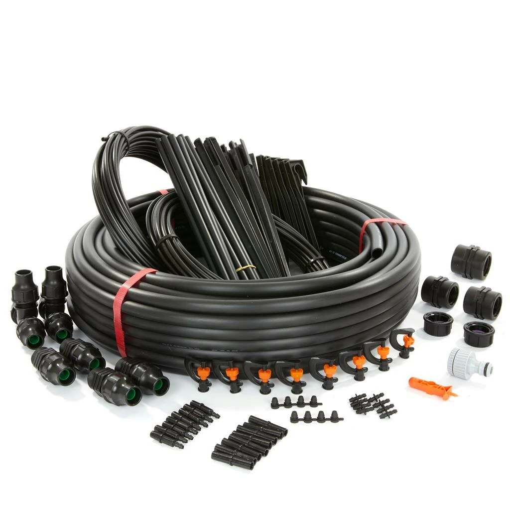De druppelslang heeft elke 30 cm een druppelaar. Leg de slang langs de wortels of graaf hem in. De druppelslang geeft je planten regelmatig een kleine hoeveelheid water. De gelijkmatige bewatering voorkomt verdamping en verspilling. Zo bespaar je tijd en water. Je border of haag krijgt vanzelf water, terwijl jij alle tijd hebt om zorgeloos van je tuin te genieten. De druppelslang heeft elke 30 cm een druppelaar. Samen geven de druppelaars je planten regelmatig een kleine hoeveelheid water. De gelijkmatige bewatering voorkomt verdamping en verspilling. Zo bespaar je tot wel 70% aan water. De druppelslang is er in twee lengtes: 25 of 50 meter en is eenvoudig in te korten. Leg hem op de grond, dicht bij de wortels van de planten of graaf hem in. O ja, installeren is heel eenvoudig!